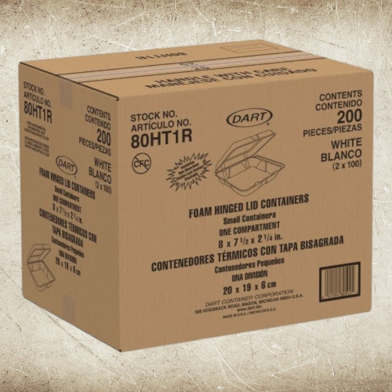 Be the first to review “FM-80HT1R-Dart Foam Hinged Containers Non Perf Small 8 x 7 1/2 x 2 1/4”