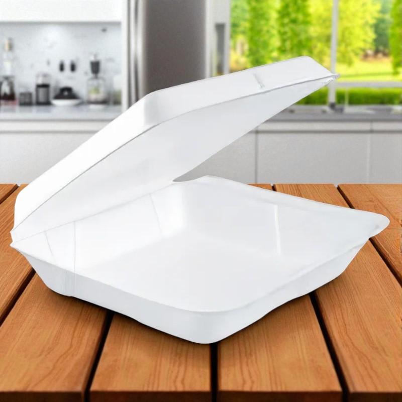 FM-80HT1R-Dart Foam Hinged Containers Non Perf Small 8 x 7 1/2 x 2 1/4